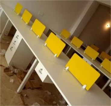 Seating Capacity 2 Seater Material Plywod ( prelaminated) Layout Type Linear Features Dismentalled & customize Frame Type M.S Modular yes Under Structure supported with 30mmX30mm metal M.S with powder coated, working top 25 mm prelaminated particle board,with front glas 8 mm laquour . Additional Information: Delivery Time: 1 week