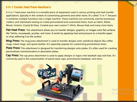 • 5 in 1 combo heat press machine