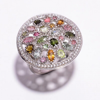 Natural Multi Tourmaline Gemstone Ethnic 925 Sterling Silver Ring 10 US HBS-23