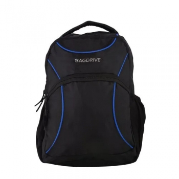 Material Water Repellent 600 D Polyester Brand Bagdrive Tourist Baggage Color Blue Capacity 27 Litres Compatible Laptop Size 15.6" Bag Style Laptop Backpack Number Of Bottle Pockets 2 Number Of Compartments 3 Compartments Gender Unisex Is It Waterproof Waterproof Top Handle Yes Laptop Sleeve Yes Side Bottle Pocket Yes Trolley Support No Country of Origin Made in India SPACIOUS - Men or Women, These bags can accommodate all your necessities. 15.6" Inch laptop and it protects it from damaging DETAILED ORGANIZER - These backpacks have three compartments and one easy access pockets which makes it easy to organize all your stuff STERNUM SUPPORT - The sternum strap is easily adjustable. Making it your perfect travel partner. A PERFECT GIFT - These backpack are perfect gifts for those who love to travel