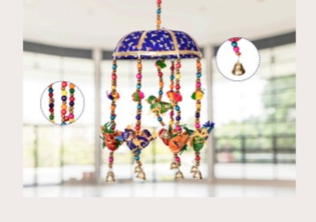 BIRDS BASKET MATERIAL TYPE : WOODEN & FABRIC COLOUR : MULTICOLOUR SIZES 3" INCH BIRD 14" INCH HANGING BASKET